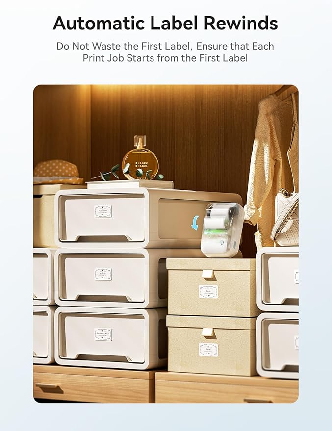 - Portable and Rechargeable: The thermal label printer weighs just 293g, making it compact enough to fit in your pocket and easy to carry anywhere. It features a built-in 1500 mAh rechargeable battery, providing up to 100 days of standby time on a single charge.