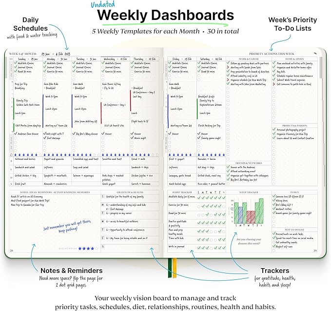 Roterunner 2025 B5 Pink Softcover Purpose Planner Notebook 7.5'x9.8' Undated Planner Daily Weekly Monthly Productivity Goal Setting Tool for Work Home ADHD Adults Self Care Journal