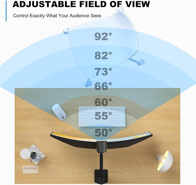 4K USB Webcam with 4 Noise-Canceling Mics, 50-92 FOV, Built-in OSD & Privacy Cover, Plug & Play for Zoom, Teams, Recording