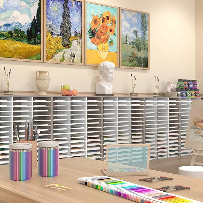 - 48-Compartment Mail Sorter Organizer: Organize 500+ sheets per slot in this industrial-grade classroom mailbox. With 48 compartments (12 x 9 x 2.1 inch eash slots), store comics, magazines, and travel brochures effortlessly. EPA-certified particleboard ensures long-term durability for office/classroom use.