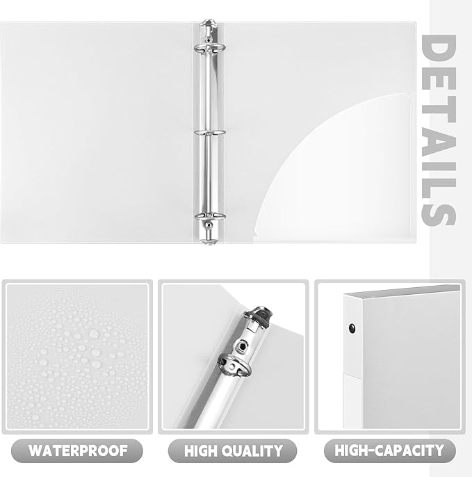 Henoyso 16 Pcs 3 Ring Binder 1/2'' Round Fits Letter Size 8. 5'' x 11'' Paper Plastic Flexible Binder Holds 100 Sheets with 1 Pockets Versatile Organizer for Office Home School (White)