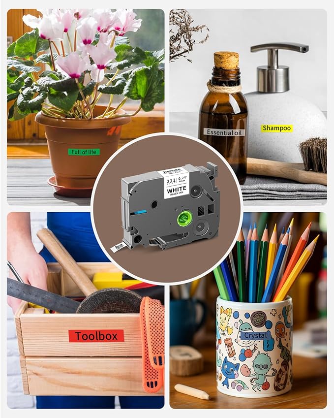 - Wide Applications: These 6mm 0.23" laminated white label tapes are suitable for indoor and outdoor use. The ptouch tape 6mm 0.23" white label is widely used in home, offices, schools, businesses, gardens, industrial, and more