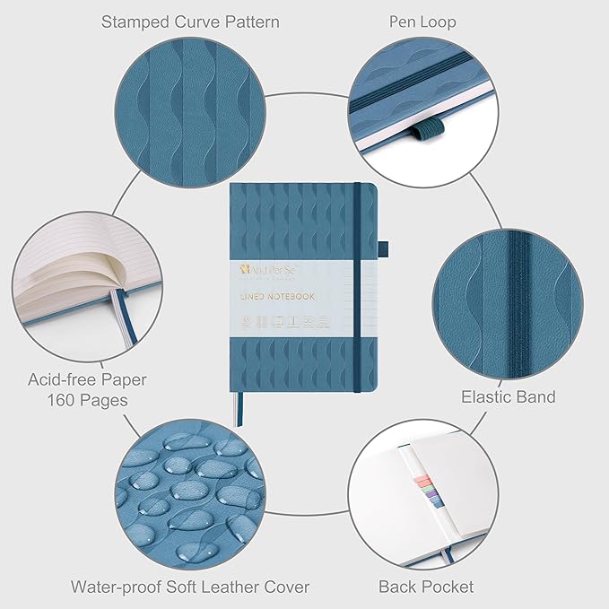 &And Per Se Lined Journal Notebook for Women&Men with Pattern, 160 Pages 100GSM Thick Paper, A5 Hardcover Journals for Writing(Blue)