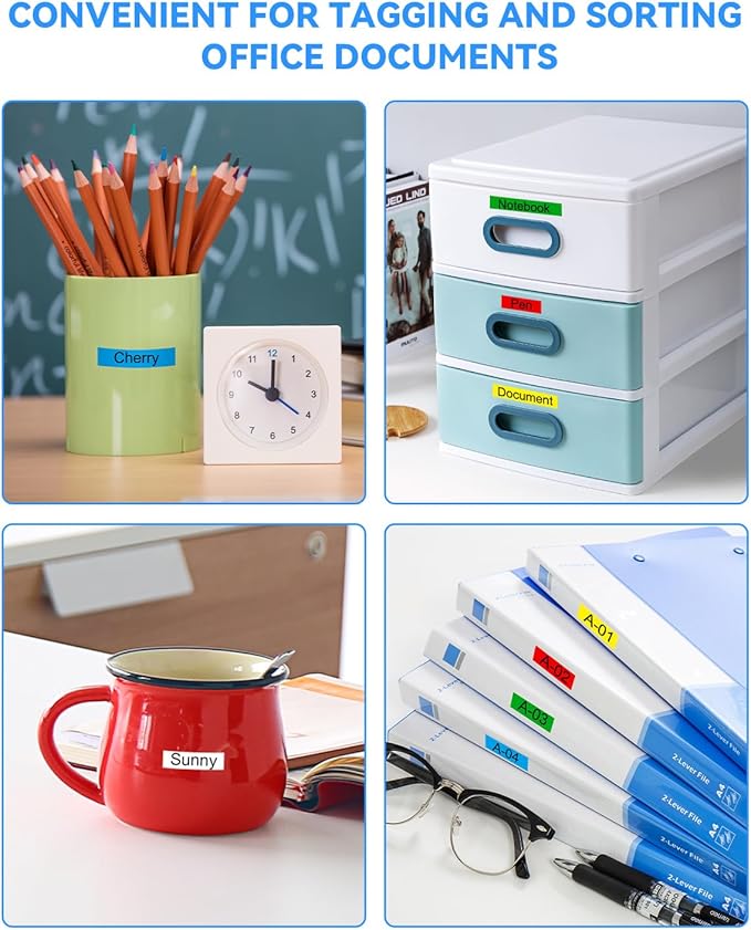 - Color: Black on White/Red/Blue/Yellow/Green; Size: 1/2 inch(12mm) x 26.2 feet(8m)