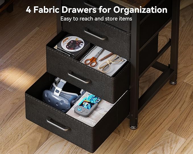 - 【Ample storage space】 Featuring four generously - sized drawers and two iron hooks, this l-shaped desk efficiently organizes a variety of items, including files, stationery, and personal belongings. This configuration optimizes organization, allowing you to keep your work essentials in order. Not only keeps your workspace tidy, but also provides a sizable surface area.