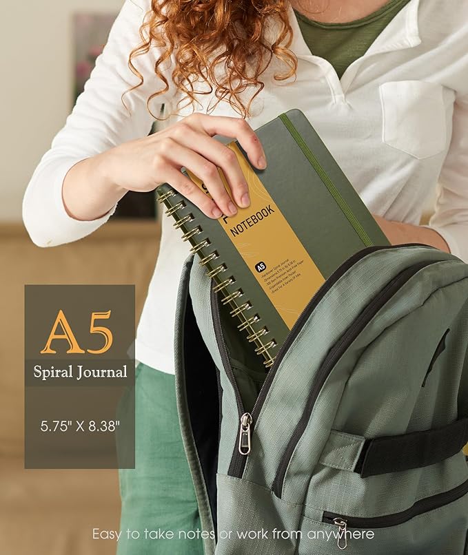 - 【A5 Journal with 100 GSM High-Quality Paper】 Crafted from 100 GSM thick ink-friendly paper, our notebook prevents ink bleed-through and ghosting. It accommodates various pens, including ballpoint, gel, and fountain pens. A5 size 5.75" x 8.38", perfect size for carrying around or put into your bag or purse.