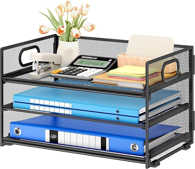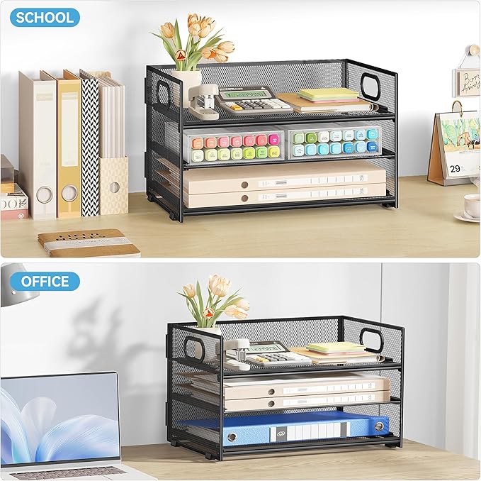 - Paper Organizer Function and Usage: The mesh desktop file organizer can hold various items including paper, folders, books, bills, notebooks, etc. The open design enables quick identification and access to contents, helping to declutter and organize the desk