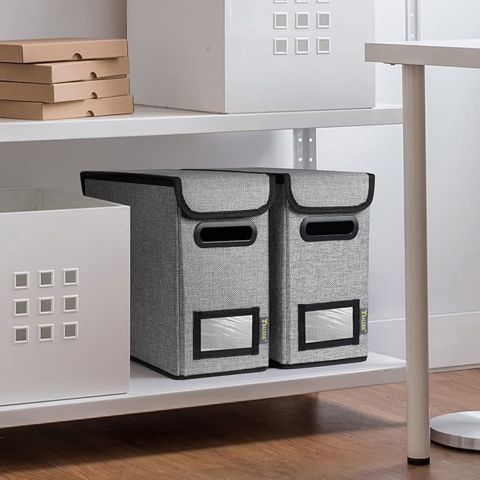 - [DURABLE MATERIAL] The outer layer of our filing box is crafted from high-quality polyester fabric and reinforced with thick cardboard in the middle. This construction ensures that the box maintains its shape and provides better bearing capacity for important documents and files. Its textured appearance can also serve as a stylish decorative element in any office or home