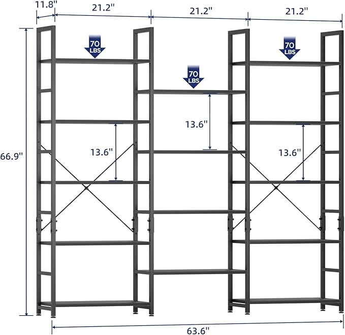 - 【Triple Column Multifunctional Bookshelf】Featuring 14 open shelves, this bookshelf provides ample space to store books, photo albums, alarm clocks, potted plants, and various decorations; It serves as both a functional storage unit and a stylish display for your beloved collections; The minimalist and elegant design complements a variety of home decor styles, making it a versatile addition to any study room, bedroom, living room, dining room, or office; Dimensions: 63.6''*11.8*66.9''(L*W*H)
