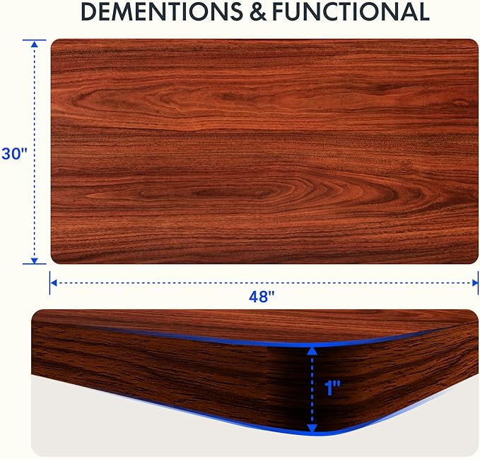 - AMPLE WHOLE-PIECE DESKTOP: With its whole-piece 1β eco-friendly desktop, this standing desk provides plenty of room for your computer setup, documents, and accessories, creating a well-organized and productive work environment. Due to hand measurements, desktop dimensions may vary slightly by 0 to 1β.