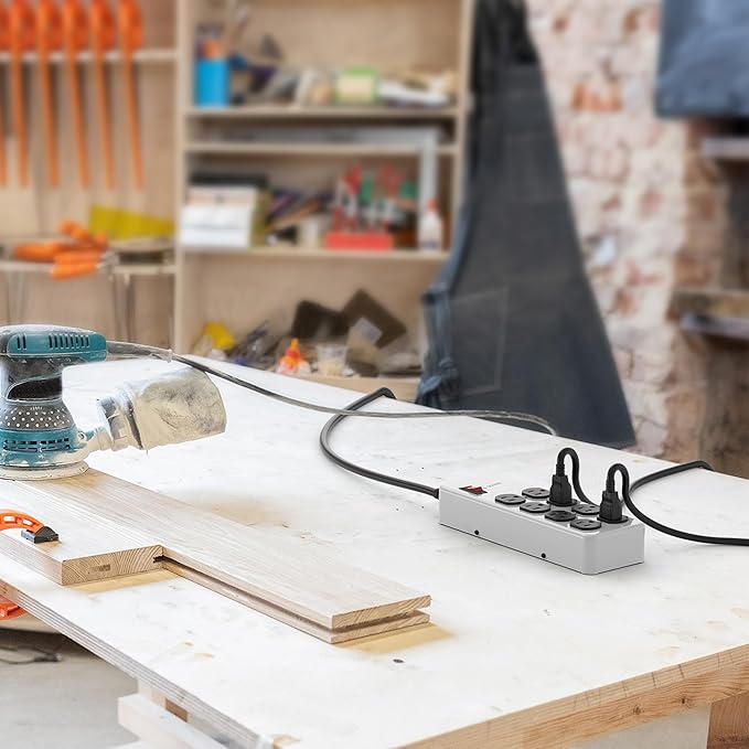 - High Capacity Powering: Equipped with 8 AC Outlets, this tool power strip surge protector has an electrical rating of 15A 125V 60Hz 1875W, combined with a 10ft 14AWG Heavy Duty Power Cord. It's the ultimate solution for all your power needs in heavy-duty settings, embodying the essence of a shop power strip heavy duty 15 amp.