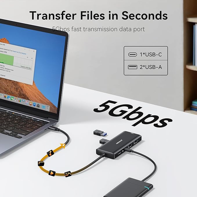 - 4K@60Hz HDMI to USB C hub: This usbc hub allows you to achieve up to 4K@60Hz (3840 x 2160) cystal-clear image,down compatible with 2K@120Hz, 1080P.This macbook air accessories adapter allows to mirror or extend your laptop screens or monitors by connecting monitors tvs projectors with hdmi ports.Please note that your usb c device’s usb c port must supportsvideo output (display port alt mode or thunderbolt),otherwise it will won’t output images on monitors or screens