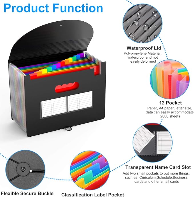 - 【Quick Access & Easy to Categorize】: Bright, color inner pages and Jan - Dec tab, just take a glance and locate. The tabs is clear and easy to read, not obscured by files.Use 2 additional front pockets for business cards, project title cards or notes.