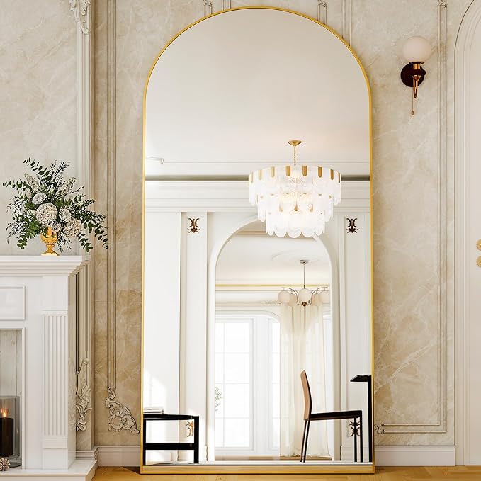 GLSLAND-38x77 inch Arched Full Length Mirror - Floor Mirrors Aluminum Alloy Frame Full Body Dressing Mirror for Bedroom Living Room,Gold