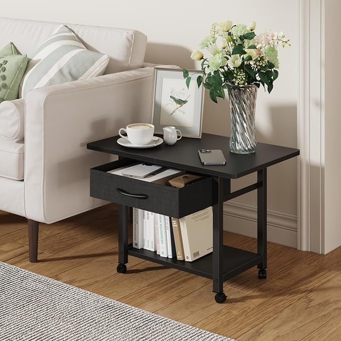- 【2-Tier Printer Stand with Storage】Printer table with drawer provide a privacy space to place your desk office items. 2-Tier open shelves offer ample storage space for paper reams,file folder,ink cartridge and pen holder etc. Printer stand can ensure a clutter-free workspace and improved organization.