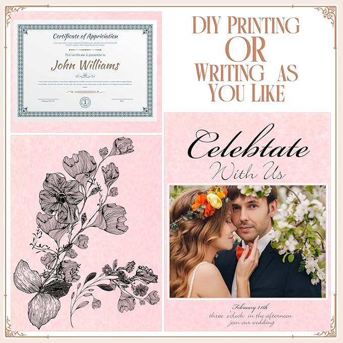 - Work As Different Things: these plain certificate papers are flexible in use, you can use them as certificate printing, wedding invitation, birthday invitation, restaurant menu, theme party decoration and so on, running smoothly in laser and inkjet printers, copiers and offset applications without jams