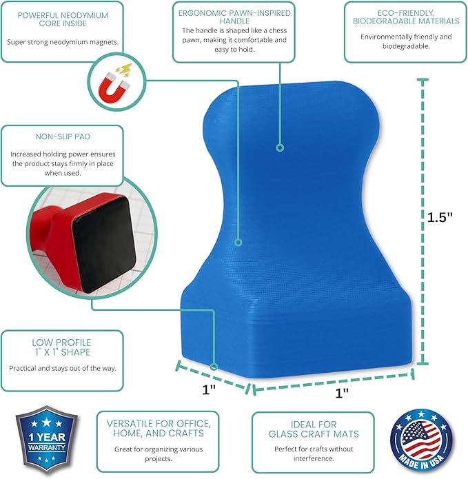 Glassboard Studio MiniPawn Magnet - Strong Neodymium Rare Earth Magnets for Fridge, Whiteboard, Locker & Magnetic Glassboards - Crafting & Office Use - Strong Fridge Magnets (Cobalt Blue, 12)