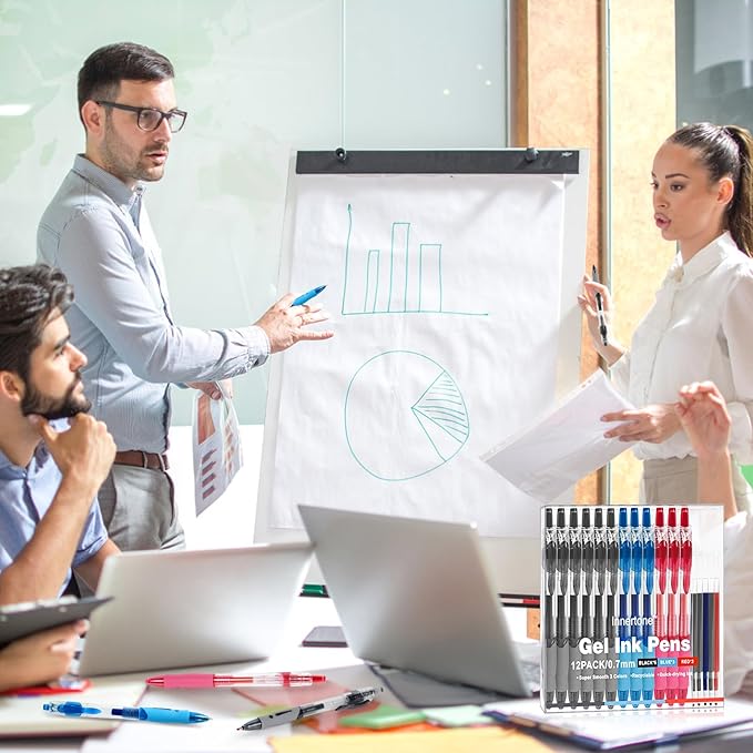 - Multicolored Combination to Meet Diverse Needs: The Innertone Gel Pen Set includes 12 pieces of 0.7mm gel pens with 6 black pens, 3 red pens, and 3 blue pens; plus four ink pen refills with 2 black inks, 1 red ink, and 1 blue ink. Whether it's for daily notes, office records, or document signing, it can easily handle various situations and fulfill your writing needs in different occasions