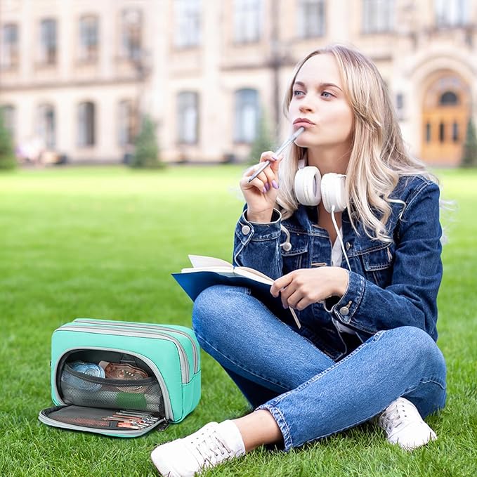 XQXA Pencil Pouch Large Capacity Pencil Case Organizer, Multifunctional Pencil Pouch with 3 Compartmens, Big pencil bags with zipper Office Travel Men Women (01-Mint Green)