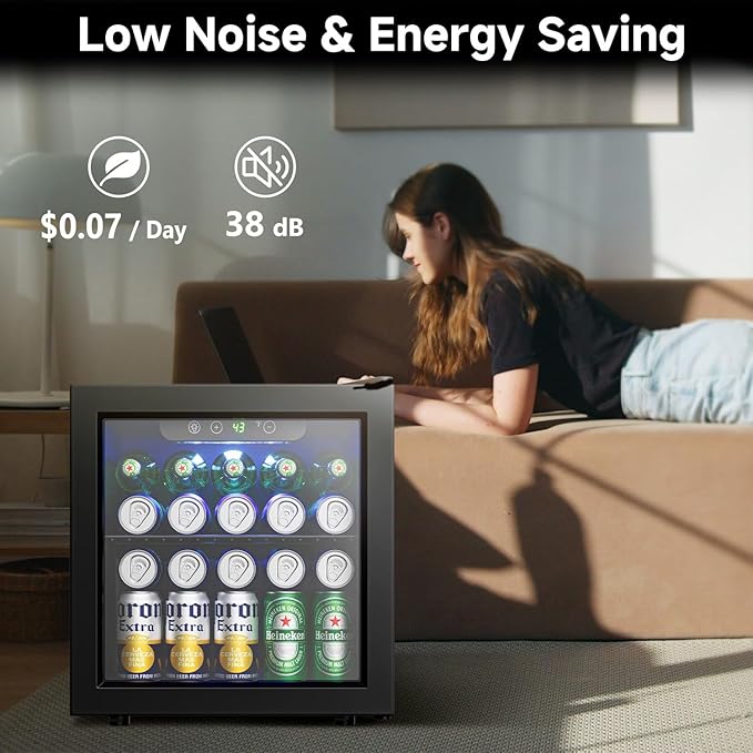 - Low Noise & Energy Saving - Our beverage refrigerator is designed to provide a quiet and energy-efficient environment. With its high-quality compressor, it achieves a low noise level (≤38dB). The estimated energy cost is as low as 0.53 kWh (approximately $0.07 per day), ensuring a tranquil and cost-effective lifestyle.
