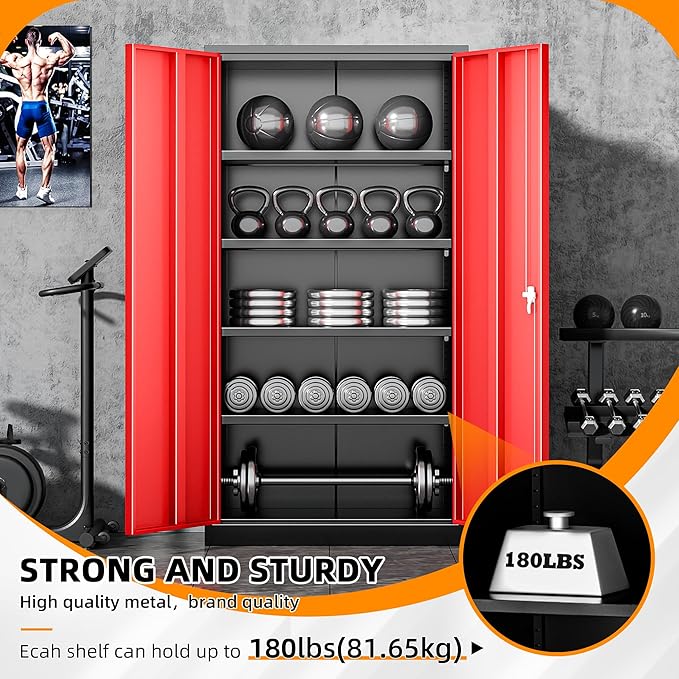 - 『4 Adjustable Shelves』: Tall storage cabinets with 4 adjustable shelves and 2 door to accommodate items of all sizes. Garage cabinets and storage system with lock picking to secure valuables, with two keys.