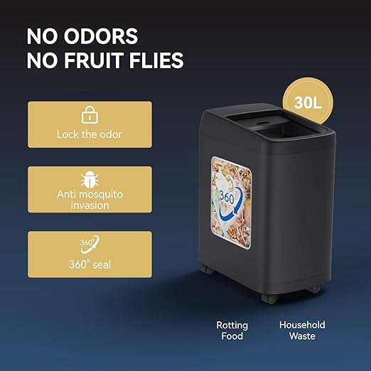 - 【Sleek Roll-Top Lid Design】 :The roll-top lid design not only keeps the trash hidden but also prevents unpleasant odors from escaping. The smooth opening and closing mechanism effortlessly seals in the odor, keeping your kitchen smelling fresh.