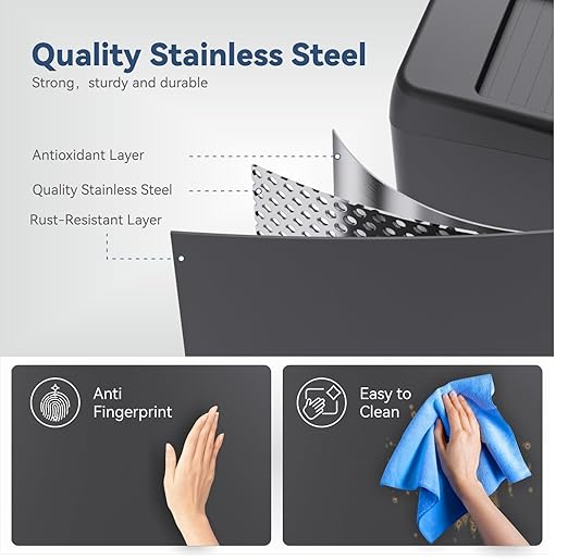 - 【Durable Stainless Steel Construction】:Crafted from high-quality stainless steel, this 13-gallon trash can is built to last. The robust material ensures long-lasting use and adds a modern touch to your kitchen. The stainless steel surface of the garbage can is easy to wipe clean, making maintenance a breeze.