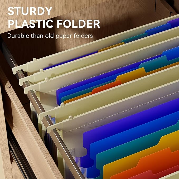 - CHEER UP YOUR FILE CABINET: ThinkTex innovative plastic hanging folder(Not suitable for Manila folders). Designed for letter size files and most standard files cabinets. 7 expandable pockets and 6 colorful dividers, large capacity