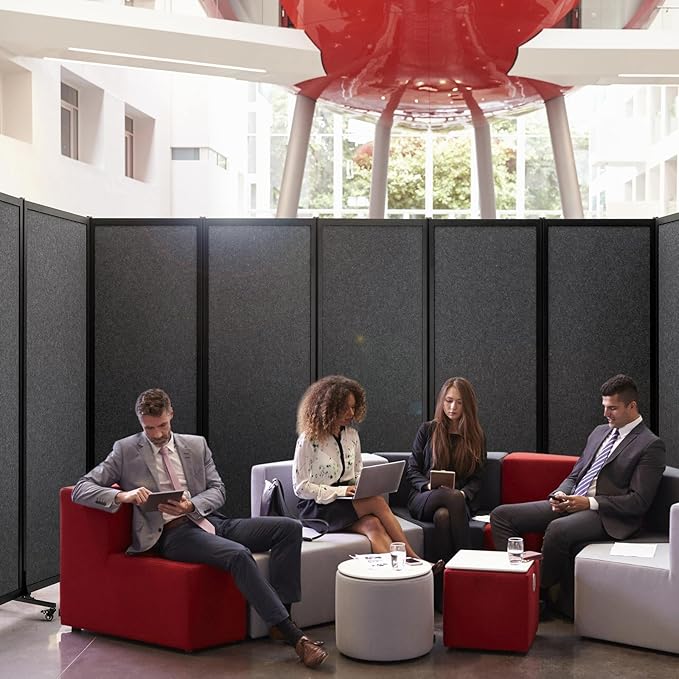 Upgrade Version Room Partition and Divider, Freestanding Rolling Dividers with Wheels,Office Privacy Screen Divider Wall,Classroom Felt Dividers,10'6"L* 6'7"H,5 Panel,Dark Grey
