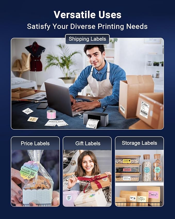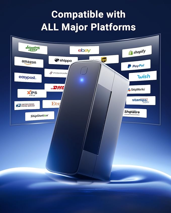 - Broad Compatibility - This thermal shipping label printer is compatible with nearly all shipping and e-commerce platforms, such as Amazon, eBay, UPS, FedEx, Shopify, USPS and more. The 4x6 label printer accommodates thermal labels with widths from 1 inch to 4.6 inches, suitable for shipping labels, product labels, thank-you labels, DIY labels, and holiday cards