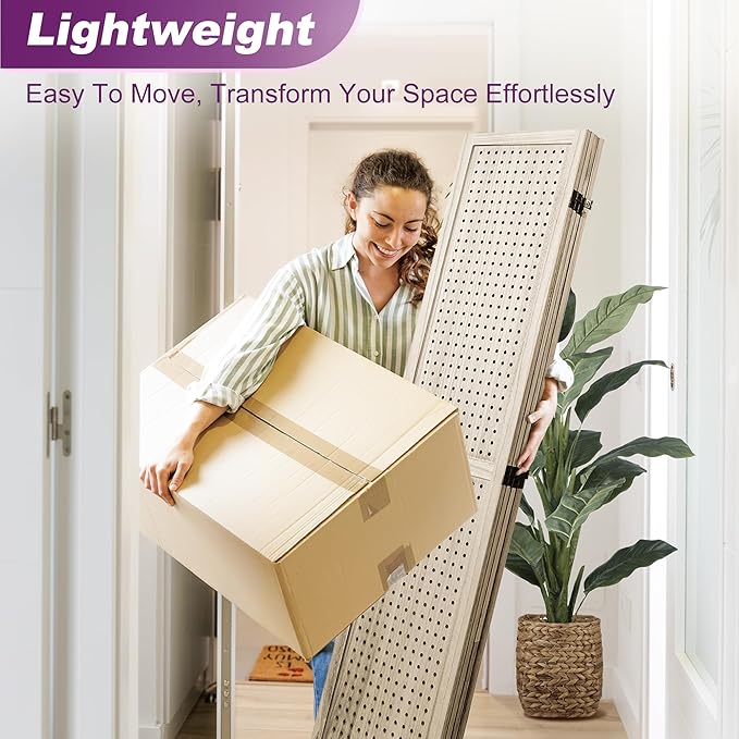 - Pegboard Display Design:This freestanding pegboard divider is an efficient solution for display and partition needs. Acting as a room separator, it allows you to maximize display space by inserting hooks or nails into the small holes, making it an ideal wall divider for room separation. Use it to hang lightweight items like clothes, hats, or bags, adding both functionality and aesthetic appeal to your room dividers and folding privacy screens setup.
