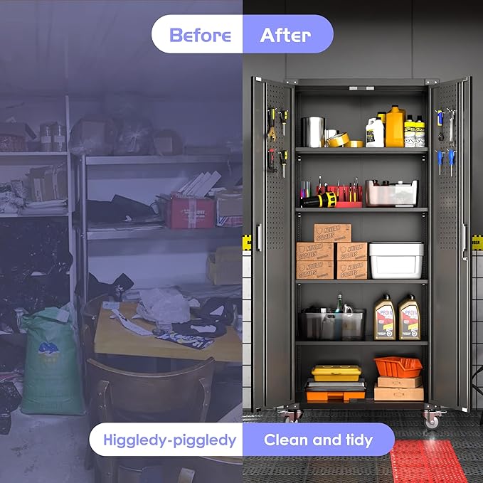 Aobabo Upgraded 72" H Garage Storage Cabinets with Wheels,Metal Storage Cabinets with Door Pegboard for Garage Home Office Storage,Assembly Required, Black