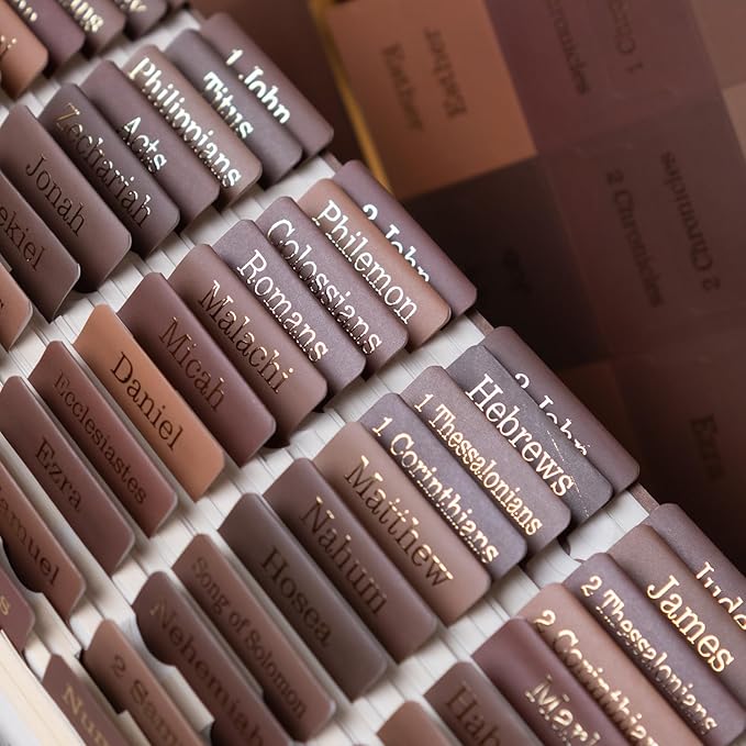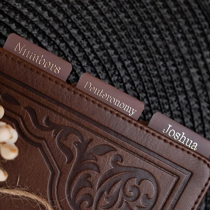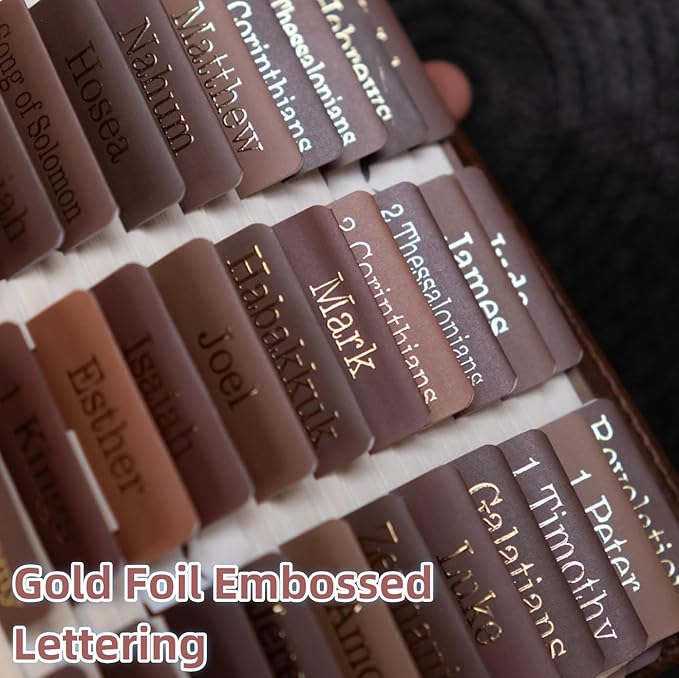 UPAFEXXI-Laminated Bible Tabs for Women and Men (Gold Foil Embossed Lettering) Reposition Large Print tabs, Easy to Read and Apply, 80 Bible Chapters Labels for Easy Navigation(Brown)