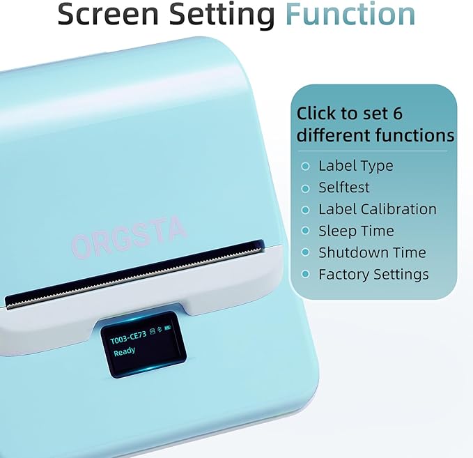 - Practical Screen Display: The T003 thermal printer with a LED screen enhances your printing experience with convenience and fun; It provides a clear view of the battery level, Bluetooth connection status, and printing status at a glance. Additionally, it allows you to select label types, set sleep timers, and schedule automatic shutdowns for optimal usability; For optimal performance, we recommend charging the printer before first use