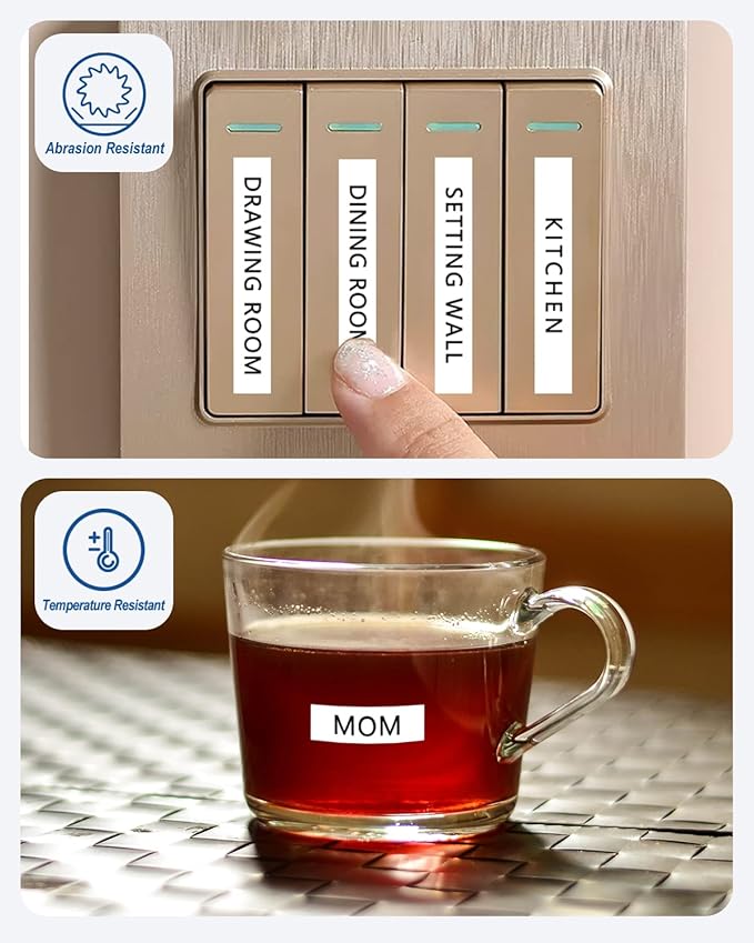 - These compatible for brother label maker tape 12mm 0.47 tape have strong adhesive and no sticky residue when you remove it. The split back design of ptouch label tape 12mm white tape is very easy to peel off