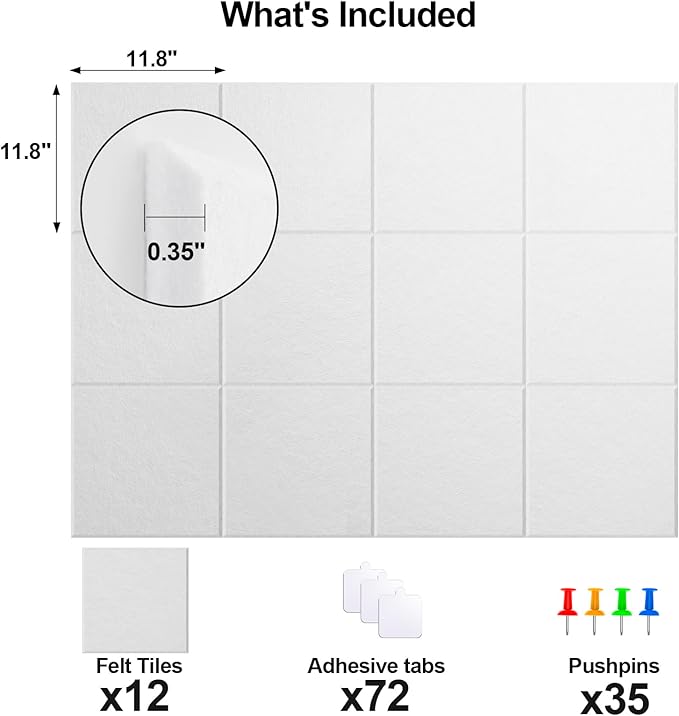 - GOOD SOUND INSULATION AND STRONG IMPACT RESISTANCE: Large area felt board helps reduce echo and noise in the room, making it the best choice for home offices, schools, children's rooms, recording studios, or any other commercial environment. Strong impact resistance can also protect your walls from wear and tear.