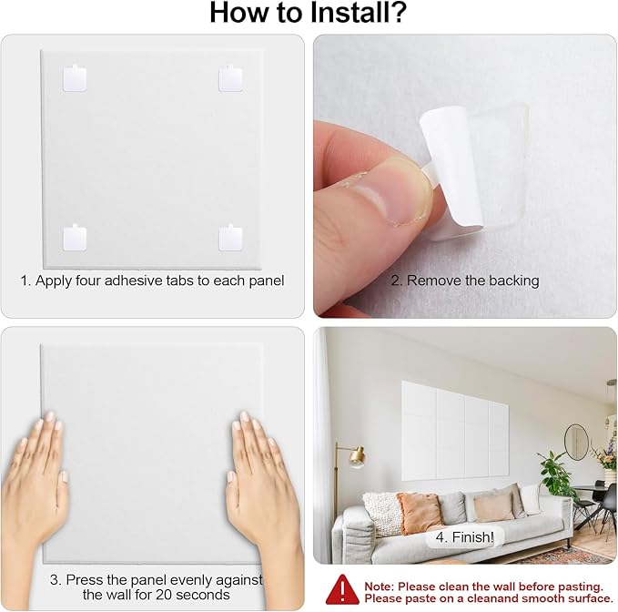 - STRONG ADHESION AND SAFE REMOVAL: The acrylic adhesive has a strong adhesive force to prevent the panel from falling off the wall while being safe to remove without leaving any adhesive residue or damaging the wall paint. You can use a hot hair dryer to remove the adhesive on the wall, and it can be removed easily.