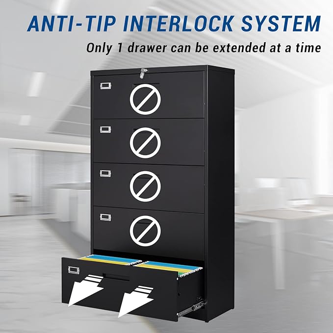 Lateral File Cabinet with 5 Drawers - Metal Steel Filling Cabinets for Home Office - Lockable Storage Cabinet for Hanging Files Letter/Legal/F4/A4 Size-Assembly Required