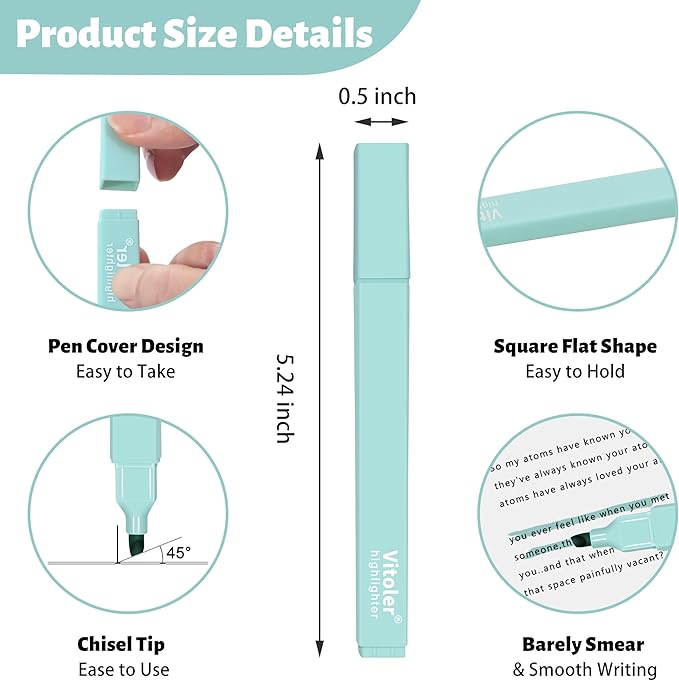 - Cute Pens Easy to Hold: The pastel highlighter is designed with square shape,itโs comfortable and easy to hold, without a sore hand and don't roll around while using.