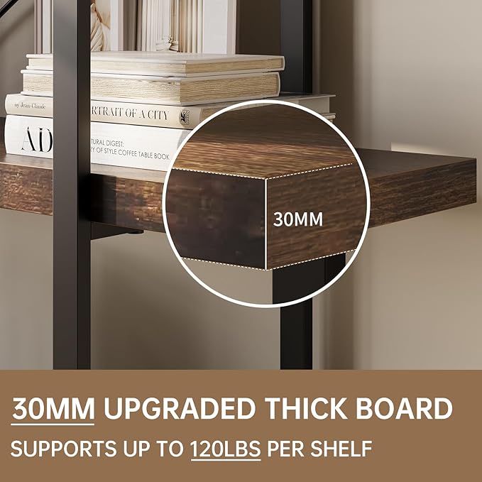 - Versatile Industrial Design: Expertly crafted with high-quality metal and rich brown wood shelves, this five-tier bookshelf seamlessly blends sturdy construction with an industrial charm that complements various decor styles, from modern to rustic