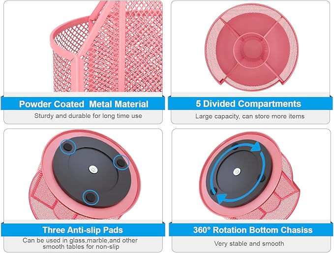 - ✎【Sturdy Rotating Design】This desk pencil holder has a 360-degree rotation of chassis with reinforced anti-skid pad, you can rotate to your front at any time to access items at the easiest angle