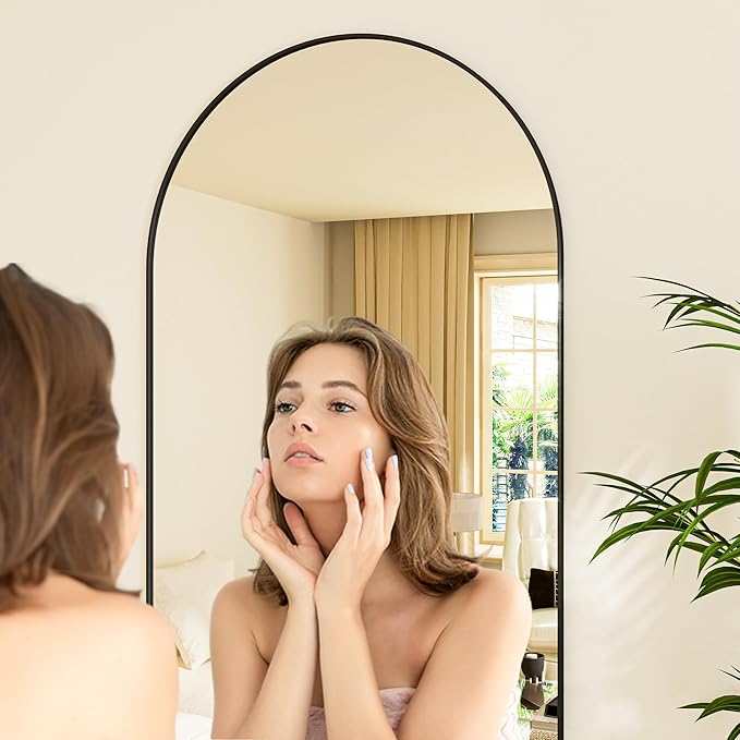 - šćExtra Large Floor MirrorćThe Arched large full length mirror can provide a full body view when leaned against the wall, to give you the perfect viewing angle before you head out the door. The full length floor mirror, which can be an accent piece for any room. The modern style mirror can match almost any type of room decoration, making your space more open and bright.
