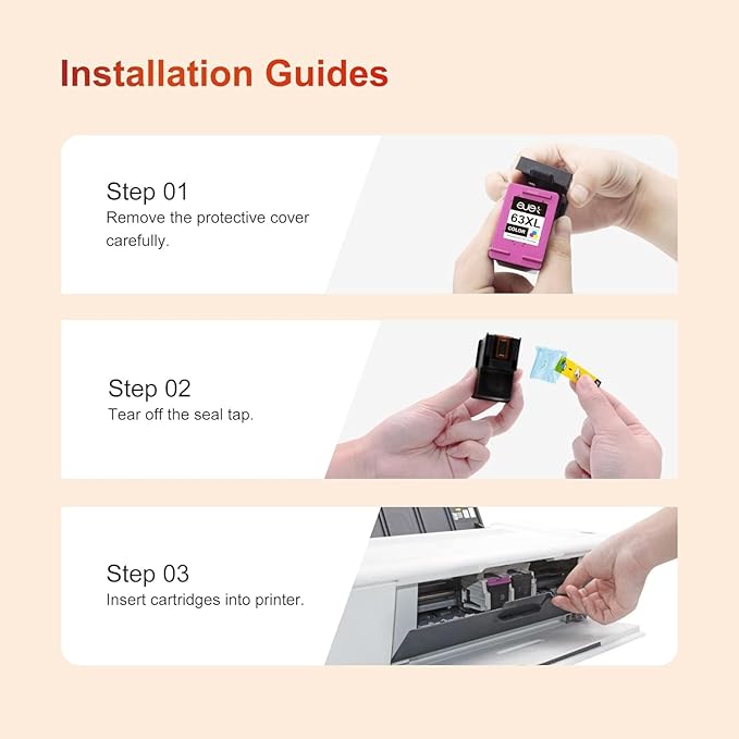 - 【Easy to install】ejet for HP ink 63xl black and color combo pack are made in an ISO 9001 and ISO 14001 certified facility to ensure that they will be easy to install, be compatible with your printer, and will print sharp text and vivid colors. 【Notice】Please confirm the printer model before you place an order. you can enjoy 24 months warranty, please reach us via Amazon Message Center anytime