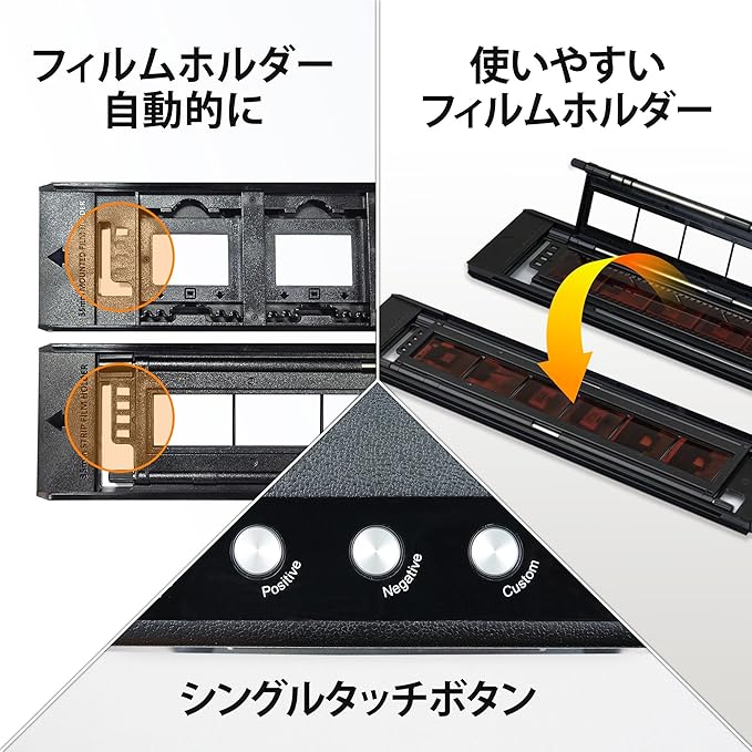 - 【Greater Productivity】– Batch scan multiple slides and negatives with ease. The scanner comes with two sets of film holders, allowing you to scan four slides or six image frames from a single film strip at once time.