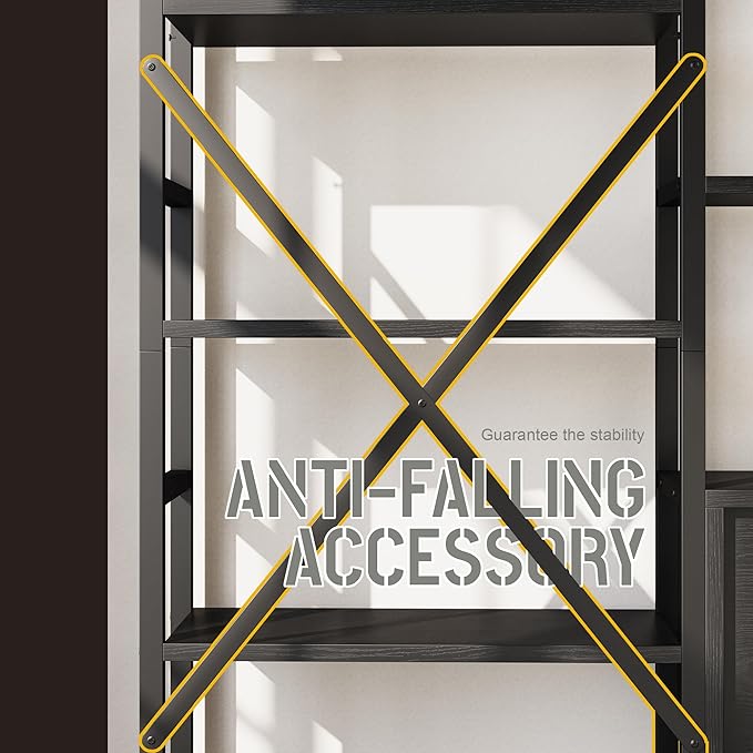 - 【Durable & Stable Construction】Tall bookshelf is crafted with a sturdy steel frame and high-quality wood panels. Bookshelves features a X-shaped bracket, adjustable foot pads, and an anti-tipping kit, enhancing the durability and stability of the bookcases. The robust structure ensures a long lifespan, making it a reliable and durable furniture piece in your home.