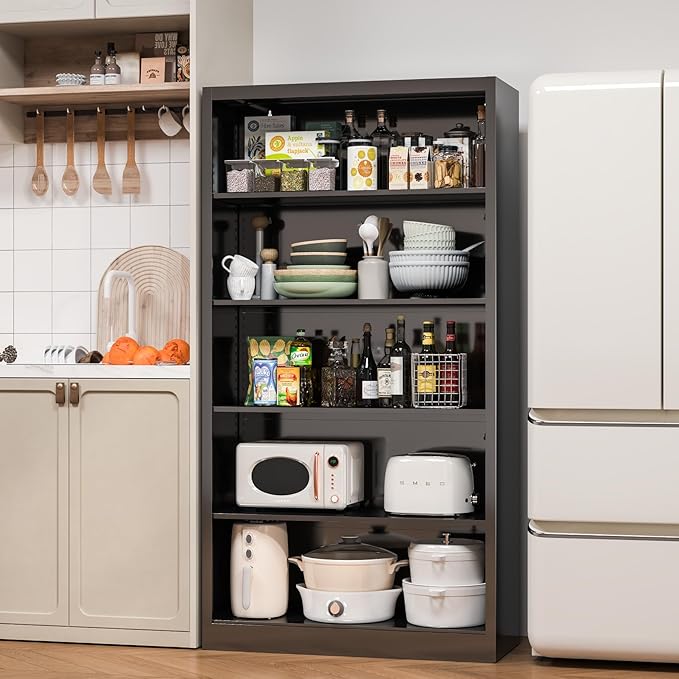 - Versatile Modern Sturdy Bookshelf: High-quality, stylish, and easy-to-install tall black bookcase, perfect for living rooms, bedrooms, offices, libraries, classrooms, and reception areas. 5 tier bookshelf offers ample storage and display space