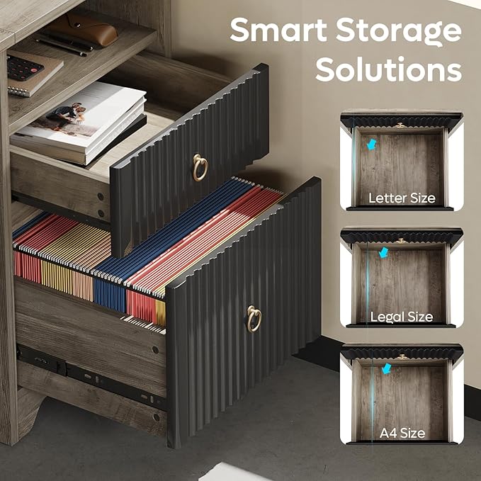 - Efficient Storage: Bestier modern desk features an open storage compartment, a storage drawer and a file drawer for letter/A4/legal-size hanging file folders, providing efficient storage solutions to keep your workspace organized and your essentials within reach