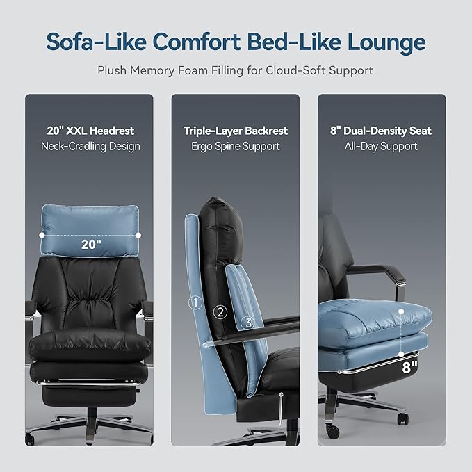 - Easy Assembly: Assemble this large office chair with back support in under 10 minutes with clear instructions. Whether you need a comfy office chair with foot rest or a reclining office chair, our support team is here to assist you with any queries