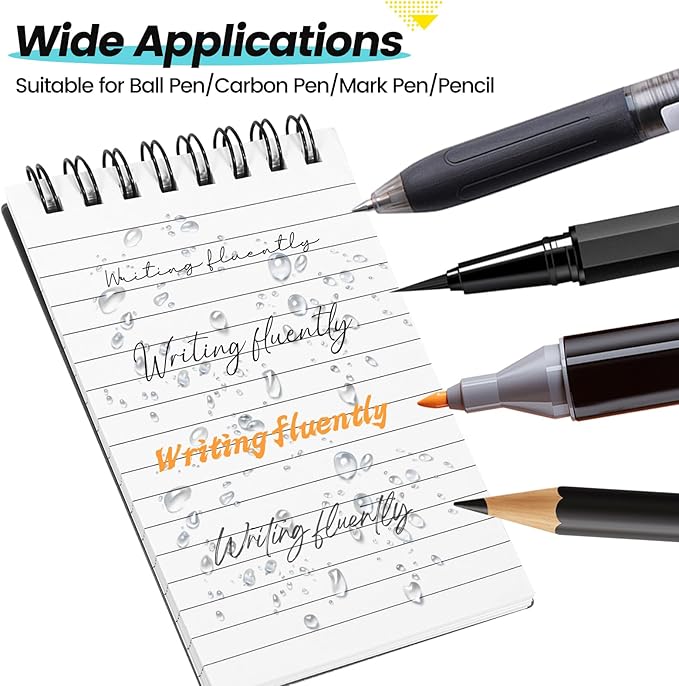 - Write in the Rain: You can write freely in the rain, as water will not seep into the pages and erase your handwriting. When the paper dries, ballpoint pens and permanent markers work effectively. The small notebook is durable in all weather conditions, such as travel, camping, office, and outdoor settings, making it an ideal all - weather waterproof spiral notebook.