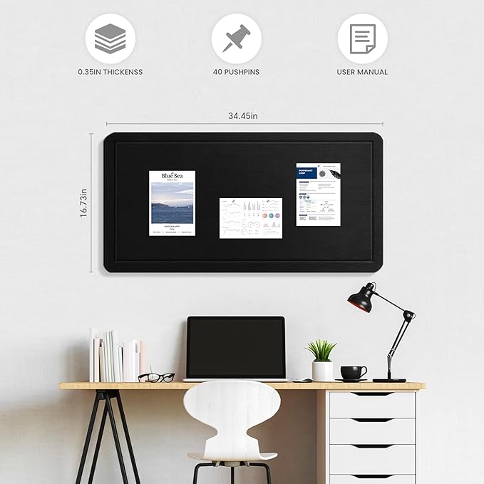 - Premium Material: Made from recycled, thick polyester fiber with no harmful chemicals, this push pin board is lightweight but strong, wear-resistant fire and damping resistant, say goodbye to all the disadvantages of traditional wooden cork boards, reliable use in any environment.